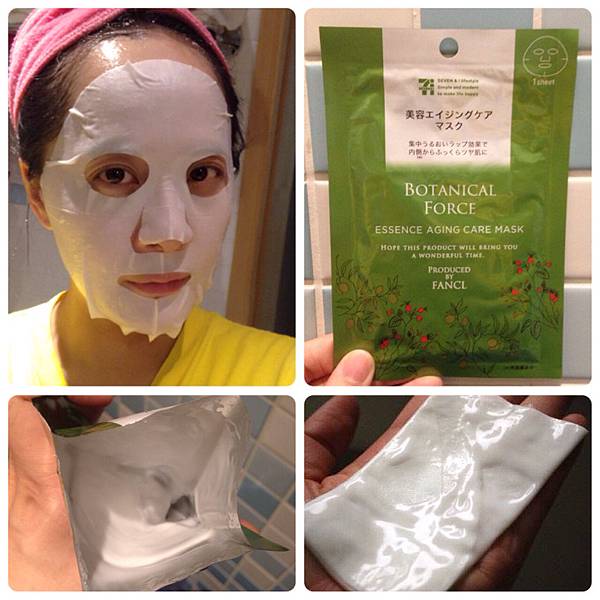 這款面膜讓我非常驚艷,它的材質非常的特別好像是綿又好像有點塑膠,有點說不上來,是我以前沒有使用過的類型。面膜的精華液白呼呼、黏呼呼的,好像有某種堅果油成分(看不懂日文啊)。而聞起來有一點酒精味,但是敷起來非常舒服無刺激感。面膜很服貼,加上精華液很濃稠,敷起來感覺很豐潤,而特殊的面膜材質會讓精華液完全滲透入肌膚,最後變成一張完全不黏膩的塑膠綿(?)。