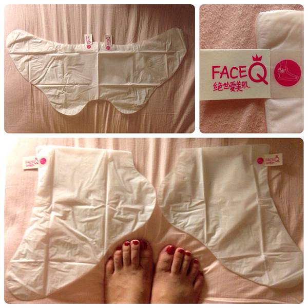 這是我第一次使用腳膜覺得滿新鮮的,打開後兩片腳膜是連在一起的,要輕輕撕開,撕開後就可以把腳套進去了。腳膜的外層是有點像薄塑膠袋的材質,內層是棉纖維,裡面裝有像乳液的精華液。