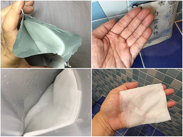 面膜打開後沒有特別的香氣,面膜紙浸泡在透明乳白色水狀精華液裡。我喜歡日系面膜不會搭配塑膠隔層,感覺這樣比較環保。