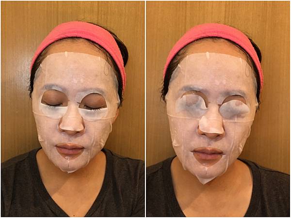 面膜剪裁偏短,無法完全敷到我的額頭但可以敷眼睛。敷的時候沒有刺激或不適感,且敷後不黏膩,保濕度很高。而且7-11賣一片69,是一款CP質很高的面膜!